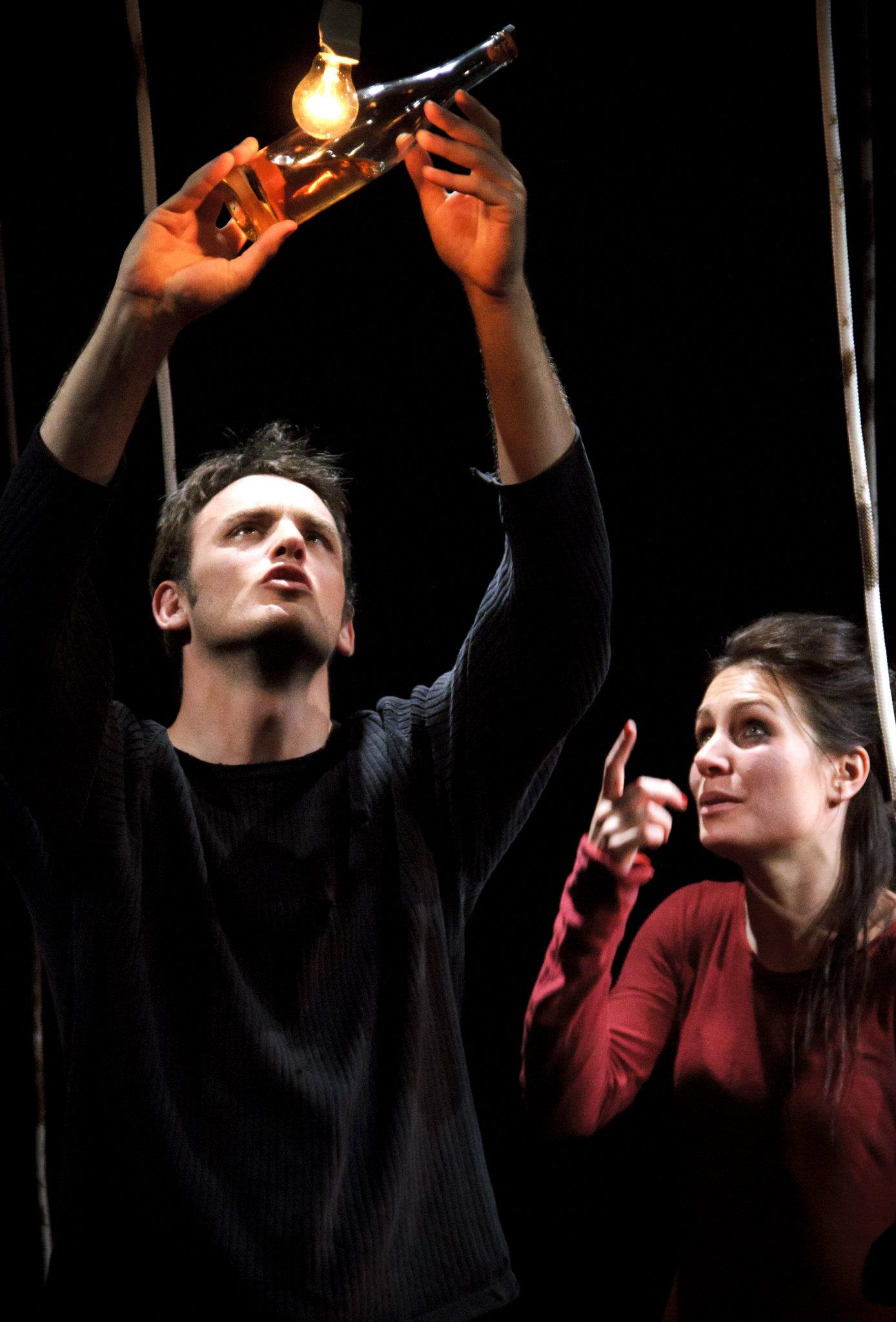 Caché dans les replis de son inconscient à lui, abrité dans son cœur à elle, un autre, absent de la scène et pourtant bien présent en eux, va les rapprocher, les rassembler au-delà leur défiance initiale. Les bombes tombent, la nuit n’en finit pas, et chacun rêve à une improbable évasion, dans le doute et l’attente de l’aurore, d’un lointain soleil…